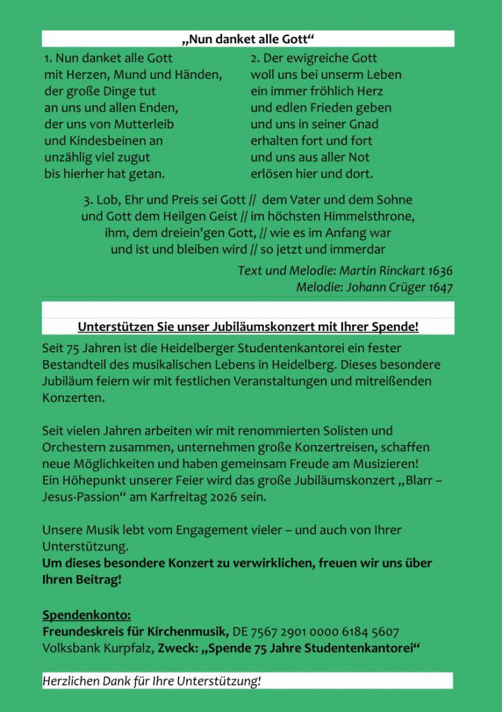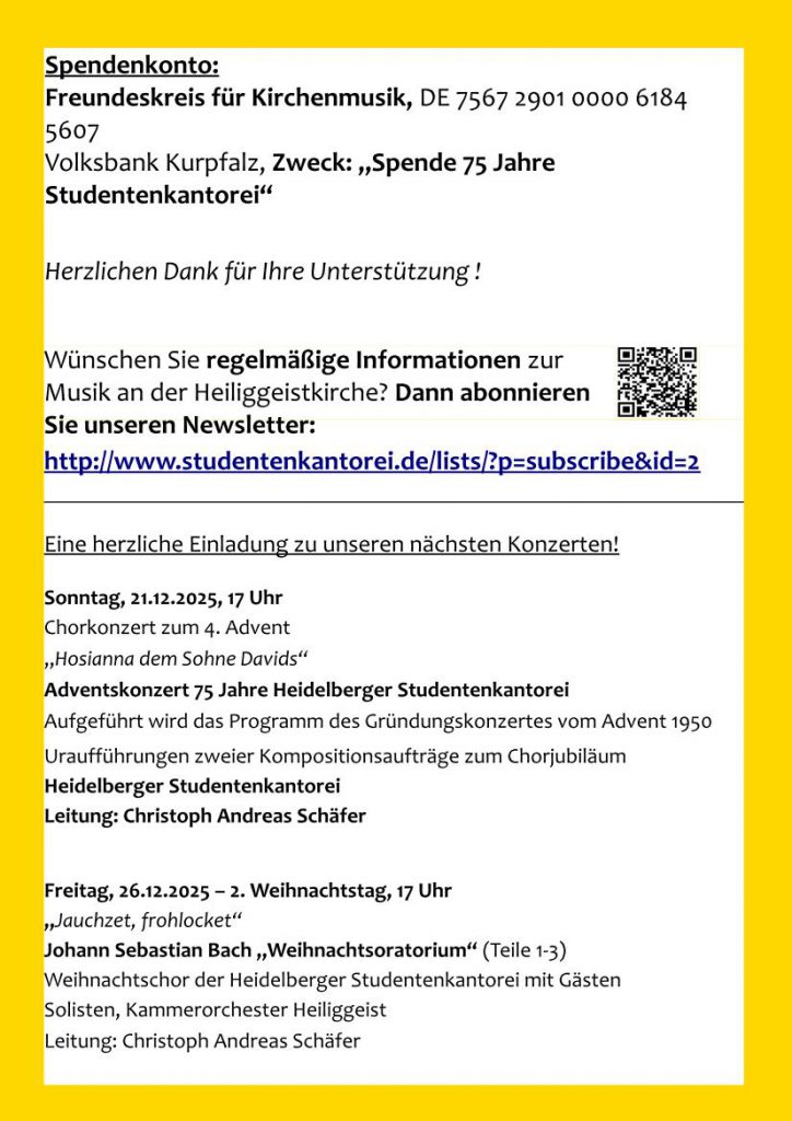 Wünschen Sie regelmäßige Informationen zur Musik an der Heiliggeistkirche? Dann abonnieren Sie unseren Newsletter: http://www.studentenkantorei.de/lists/?p=subscribe&id=2