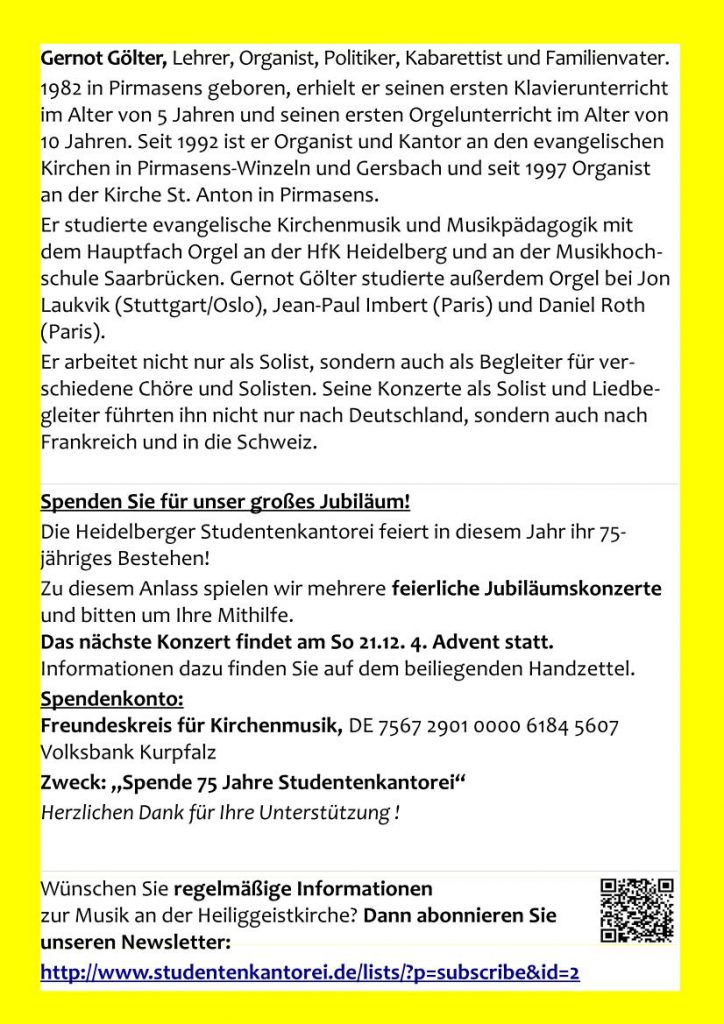 Einen Überblick über einzelne Konzerte und nähere Informationen zum Programm finden Sie neuerdings auf der Homepage der Heiliggeistkirche Heidelberg!
